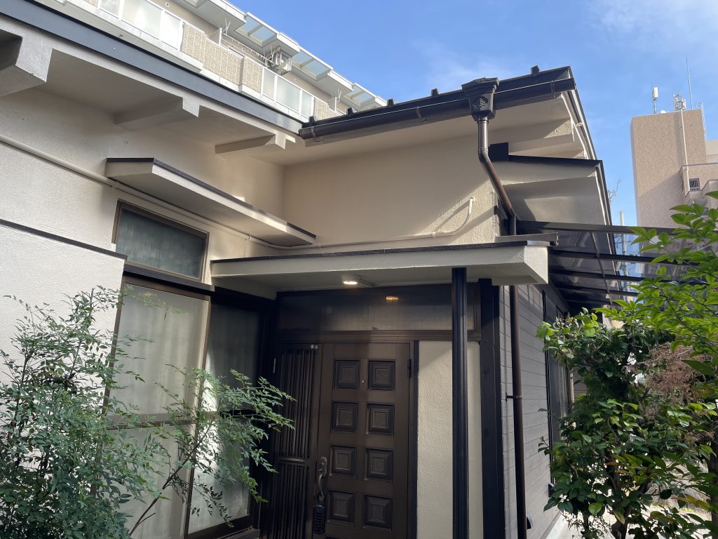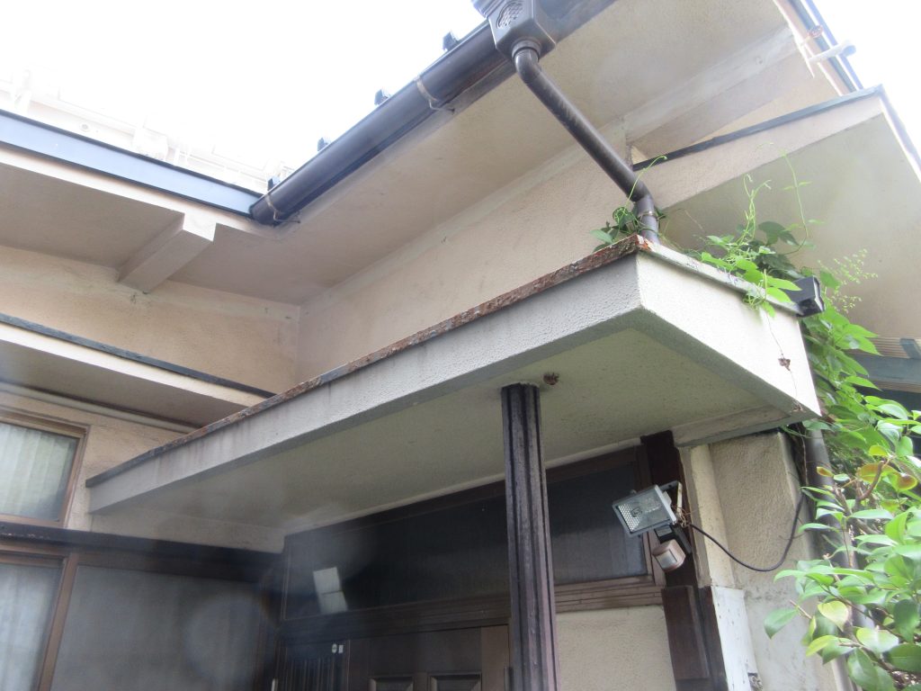 玄関庇の板金塗替え、照明器具(ダウンライト)設置、外壁は塗直しました