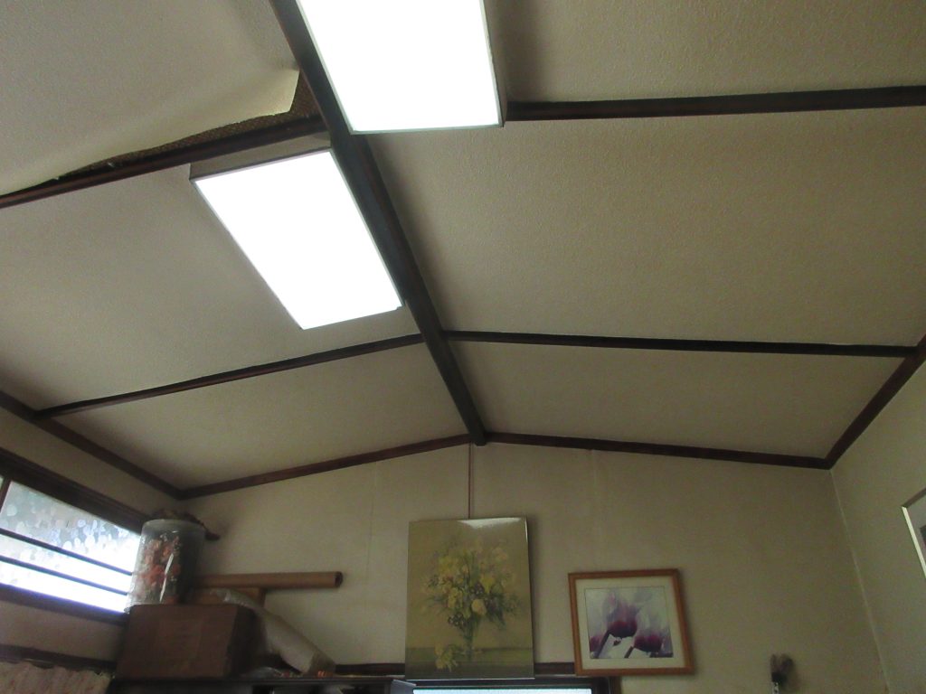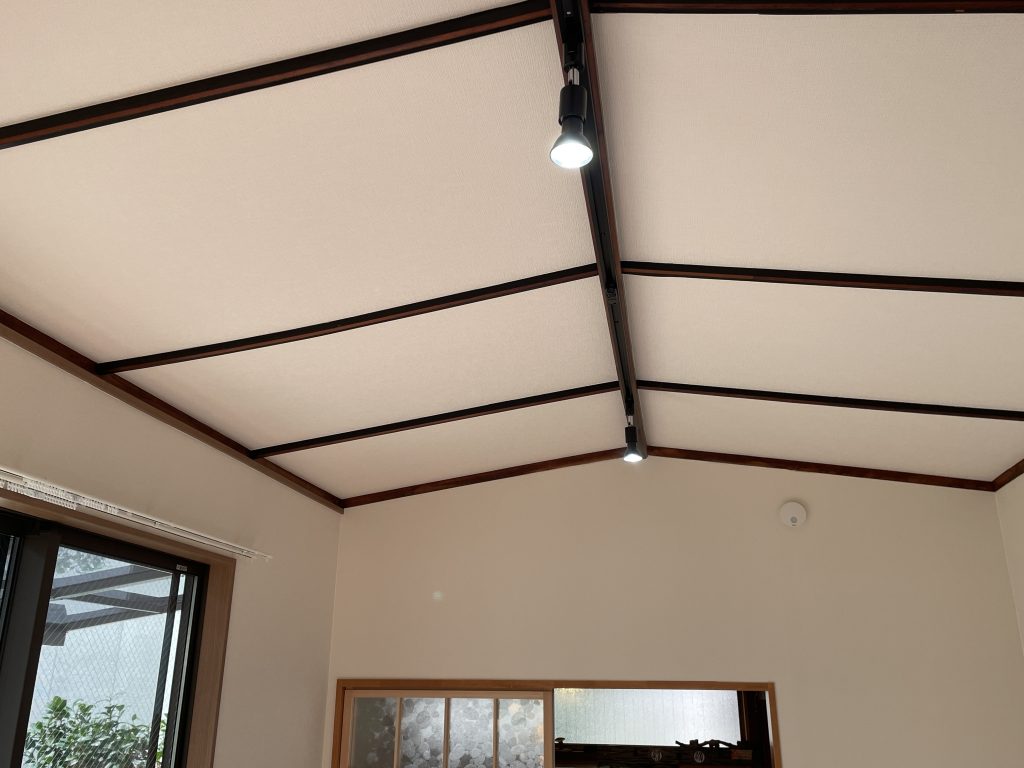 船底天井の梁はそのまま残し照明器具を交換しました