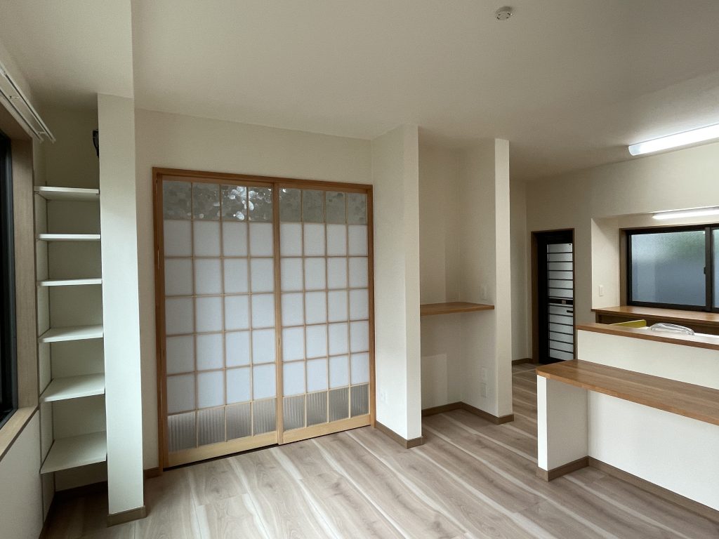 和室だった部屋をLDKに改装、書院は飾り棚に生まれ変わりました